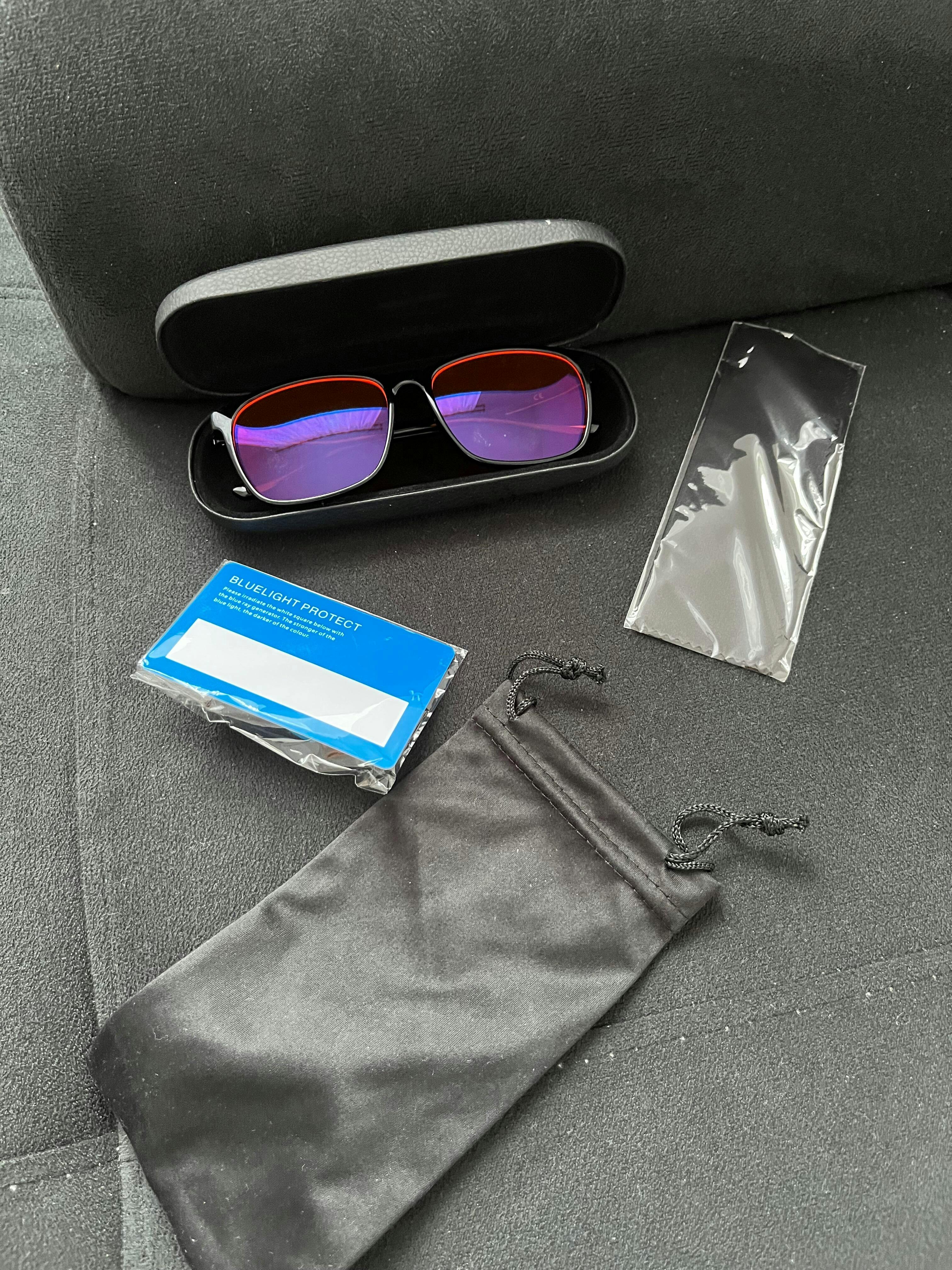 GRATIS: etui, woreczek, ściereczka, tester światła niebieskiego i kartę testową.