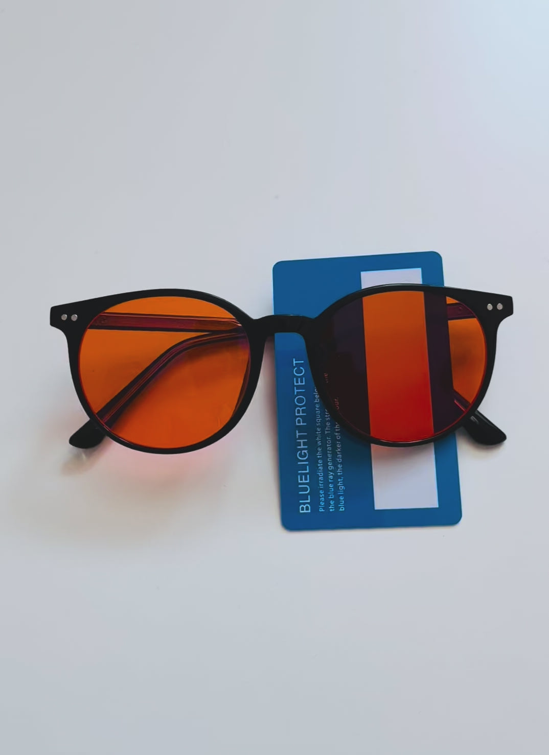 Okulary Nocne zostały zaprojektowane do wieczornego i nocnego użytku w pomieszczeniach. Pomarańczowe soczewki absorbują aż 98% światła z zakresu niebieskiego (ok. 400–500 nm), czyli tego, które najsilniej pobudza układ nerwowy po zmroku i zakłóca naturalny rytm dobowy. To praktyczne, proste narzędzie do ograniczania wpływu ekranów i oświetlenia LED na organizm późną porą.